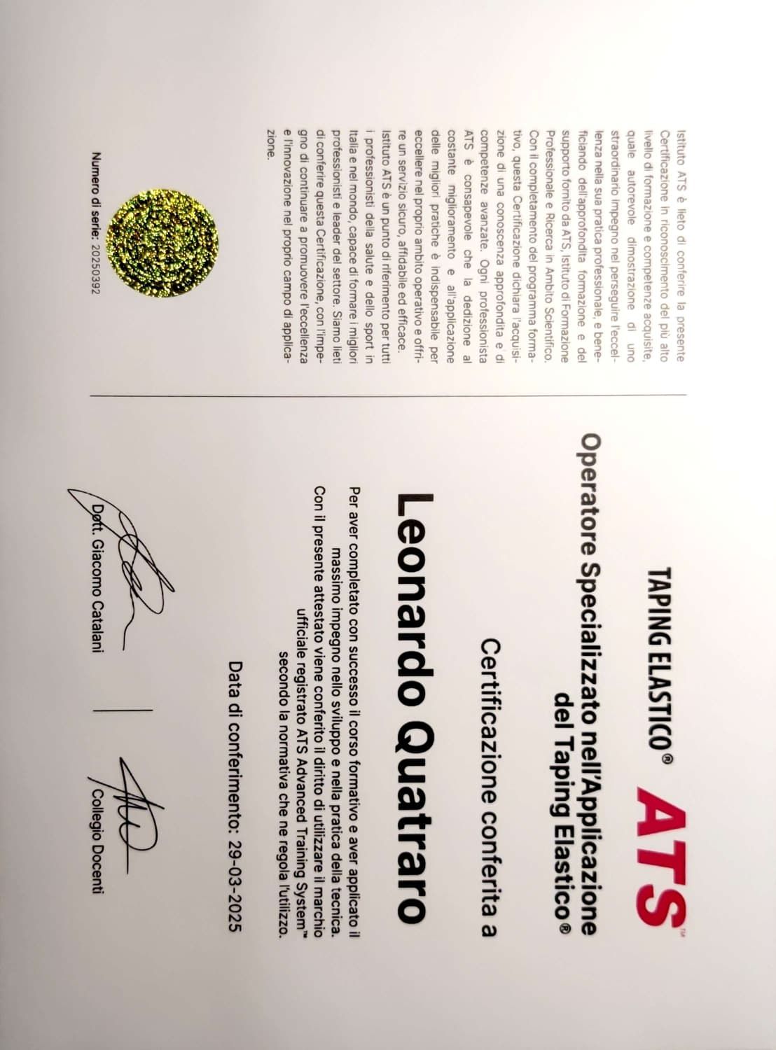 Nel mio lavoro integro diverse competenze – anatomia, fisiologia, biomeccanica e terapia manuale – utilizzando diverse tecniche come l’utilizzo del taping a scopo propriocettivo, decontratturante, drenante o stabilizzante, per ottimizzare il percorso riabilitativo.